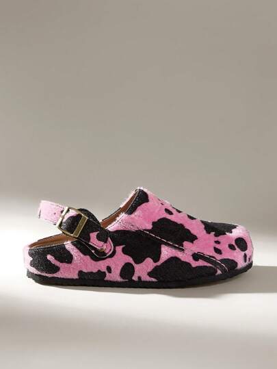 Solecia Women's Adjustable Strap Cow Pattern Flat Slide Sandals For Christmas - Pink - View 1