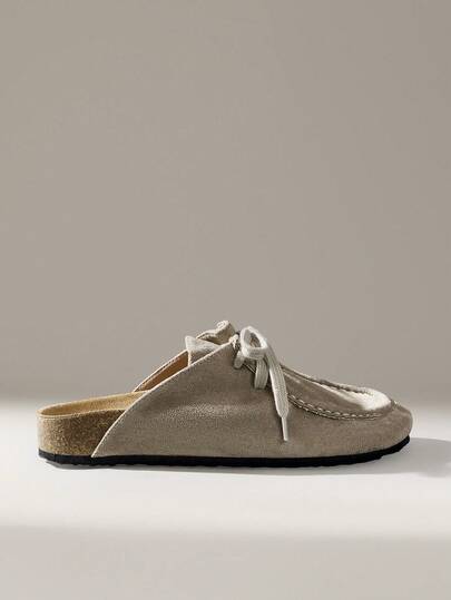 Solecia Women's Lace-Up Design Casual Slip-On Flat Shoes - Grey - View 1