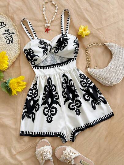 Soleia Women's Vacation Jumpsuit, Pattern Camisole, Placement Print, Beach & Seaside Summer Outfit - Multicolor - View 1
