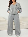 Solflare Plus Size Solid Color Elastic Waist Drawstring Loose Straight Leg Sweatpants With Pockets Women Wide Leg PantsHorse Embroidery Shirt Wide Leg Sweatpants Oversized Pants