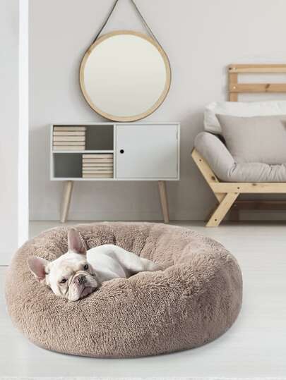 Solid Color Plush Pet Bed,Calming Plush Pet Cushion Sofa,Pet Bed,Fluffy Pillow Nest For Cats, Small Dogs And Medium Dogs - Camel - View 1
