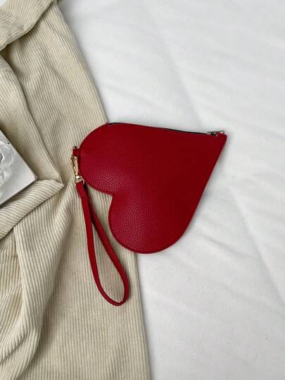 Solid Color Simple And Elegant Heart-Shaped Wrist Bag, Perfect Valentine's Day Gift For Her, Best Valentine's Gift Choice Ever, Fashionable Heart Purse, Perfectly Match With Valentine's Day Dress , Old Money , Valentines Gifts - Red - View 1