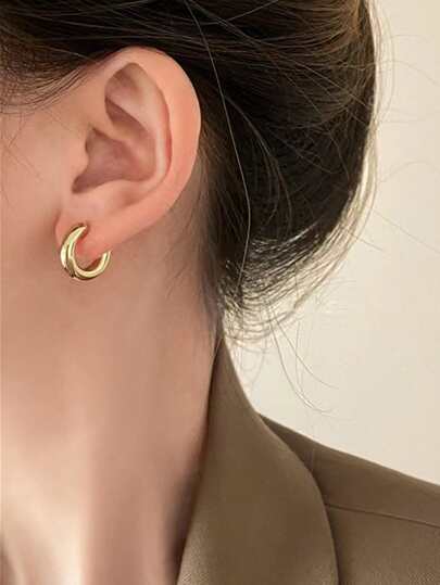 Solid Minimalist Hoop Earrings - Yellow Gold - View 1