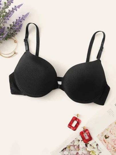 Women Casual Black Fabric Push Up Bra With Slight Stretch And Cup Detail - Black - View 1