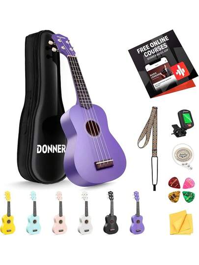 Soprano Ukulele Beginner With Online Lesson Bag Strap String Tuner Pick Cloth,  21 Inch Matte Bundle Kit  Series-Green - Violet - View 11