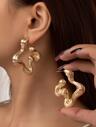 1 Pair Minimalist Vintage Exaggerated U-Shaped Gold Textured Large Hoop Earrings, Jewelry Accessories Suitable For Daily And Party Occasions