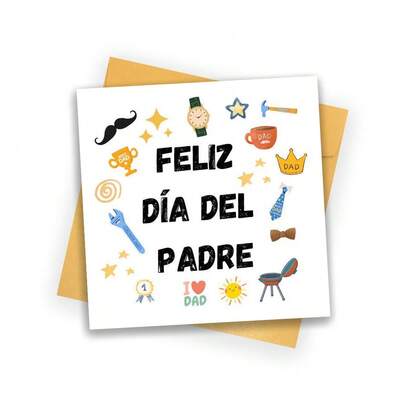Thiệp chúc mừng Ngày của Cha bằng tiếng Tây Ban Nha kèm phong bì, thiết kế hình voi và gấu trúc dễ thương vẽ màu nước, những lời chúc ấm áp dành cho bố từ các con.