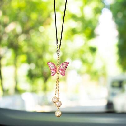 Đồ trang trí treo xe hình bướm pha lê lấp lánh, phụ kiện trang trí gương chiếu hậu sang trọng có tua rua, phụ kiện nội thất xe hơi dễ thương dành cho nữ.
