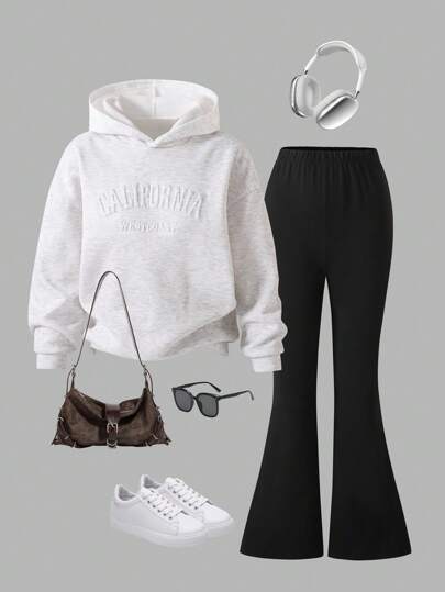 Sparklyn 2pcs/Set Teen GirlCity Name 3D Graphic Knit Hoodie + Knit Flare Pants Suit Fall Winter - Multicolor - View 1