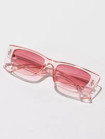 1 Pair Unisex Rectangular Sunglasses For Family Outings, Travel, Festivals, Sports, Driving, Beach, Music Festivals, Summer Accessories, Vacations, UV Protection, Golf, Hiking, Elegant Outfit, Street Style, Sports, Parties, Fishing, Outdoor Activities, Holidays - Pink - View 1