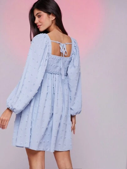 WESTFADE Square Neck Babydoll Long Sleeve Mini Dress - Blue - View 1