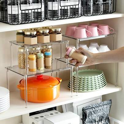 Kệ đựng đồ bằng acrylic xếp chồng được (trong suốt) - Kệ để bàn có thể tháo rời dùng để đựng gia vị, đồ dùng văn phòng, trang trí tủ đựng thực phẩm nhà bếp.