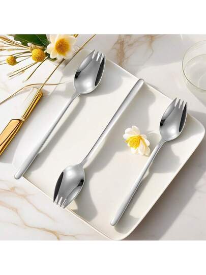 Stainless Steel 2-In-1 Spoon & Fork For Salad, Dessert, Fruit - Silver - View 1