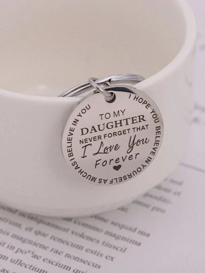 Stainless Steel Engraved Keychain Inspirational Gift For Daughter Keyring Ornament Bag Purse Charm Accessories Bag Accessories Gift, Gift, Accessories, Decor For Teen Girls Women College Students,Rookies & White-Collar Workers Key Chain Charms - Silver - View 1