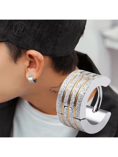 Stainless Steel Fashion Men Matte Gold Color Hoop Earrings Party Jewelry Gifts - Multicolor - View 10