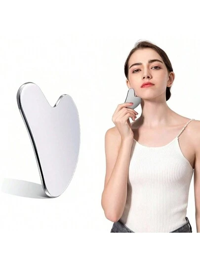 Stainless Steel Gua Facial Tools Guasha For Face Metal Gua Tighten Skin Massage Guasha Beauty Tool For Body Eyes Neck Massager With Travel Pouch Skin Care Gifts - Silver - View 1