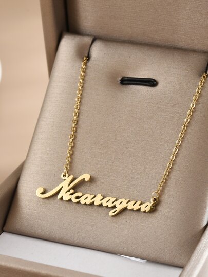 Stainless Steel Nicaragua Letter Pendant Necklace, 450mm+50mm Chain Length, Non-fading - Gold - View 1