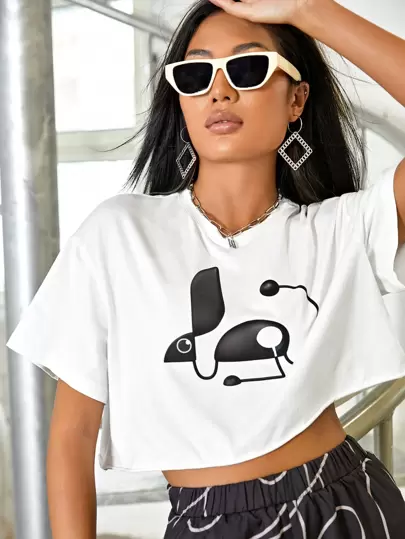 Stella Matyanova Graphic Print Crop Tee - White - View 1
