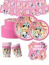 Pink Blueys Family And Friends Bingo Dog Birthday Party Theme Decorative Blind Box Tableware Party Photo Background Table Cloth Banner Paper Plate Paper Cup Napkin Gift(Some Parts May Be Random)