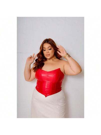 Strapless Corset In Leatherette – Plus Size Women's Fashion