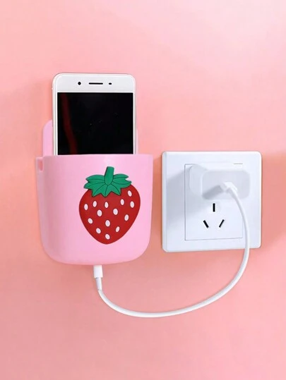 Strawberry Decor Wall-Mounted Phone Storage Box Compatible With IPhone, Android Phone, Gift For Birthday, Family, Friends Phone Holder, Phone Stand, Phone Accessories - Pink - View 1