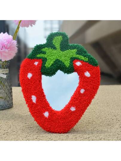 Strawberry Patterned Makeup Mirror, Embroidered Towel Craft Mirror, Poke Embroidered Vanity Mirror, Portable Princess Cosmetic Mirror, Strawberry Towel Embroidered Photo Frame Mirror, Suitable As Holiday Gifts - Red - View 1