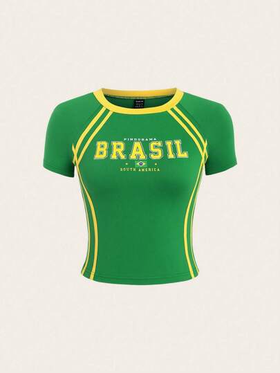 StreetHx Brazilian Fans Tight-Fitting Short T-Shirt Graphic Tees Women Tops - Green - View 1