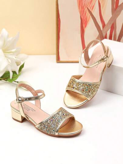 Summer New Mary Jane High Heel Sandals, Girls' High Heel Dance Shoes, Students' Performance & Daily Activity Sandals, Wedding Shoes - Gold - View 1
