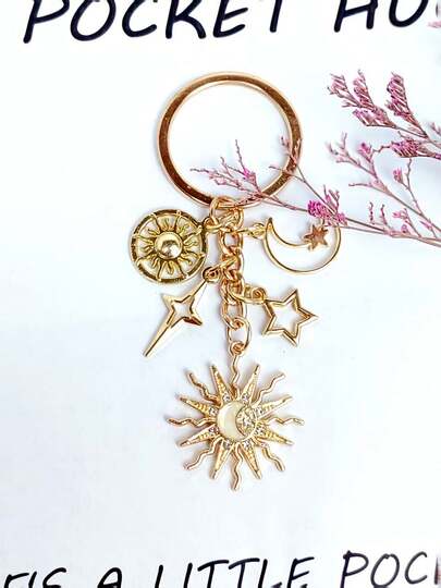 Sunflower-Themed Keychain Featuring The Sun, Moon, And Stars. Suitable For Keychain, Backpack Charm, Car Key Chain, Bag Charm, Decorative Item, Earphone Case Accessory,Bag Pendants,Bag Chain,Bag Accessories. Perfect Small Gift For Birthdays, Company Gatherings, Weddings, Holidays, Female Friends And Sisters,New Year'S Family Gatherings. - Multicolor - View 1