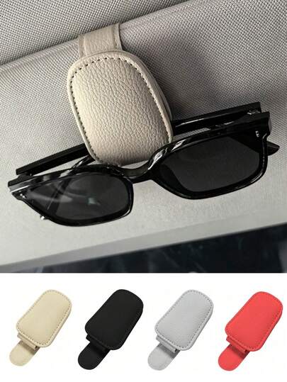 Sunglasses Holders For Car Visor, 2pcs/1pc Universal Car Sun Visor Glasses Clip,PU Material,Magnetic Leather Glasses Eyeglass Clip For Car, Ticket Card Clip Sunglasses Mount, Car Visor Accessories Gadgets,Vehicle Interior Accessories (Black/Gray/Red/Beige) - Style a - View 1