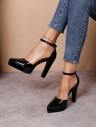 1 Pair Basic PU Leather Buckle Thick Sole High Heel Pointed Toe Hollow Out Pumps For Women, Suitable For Outdoor Wear All Seasons