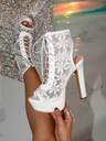 Women's Silver Glitter High Platform Chunky Heel Sandals