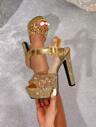 Women's Strap Rhinestone Decor High Platform Ultra High Heel Sandals