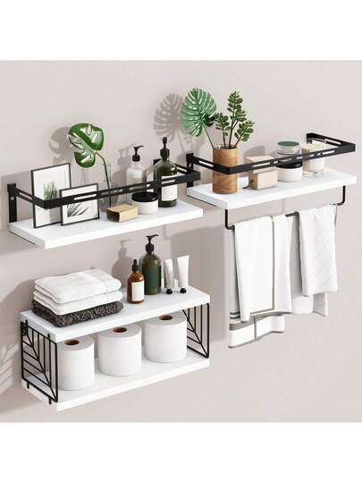 Tomnk 3+1 Tier Wall Mounted Bathroom Shelves Over Toilet, Rustic Wood Floating Shelves With Metal Frame And Towel Bar For Bathroom, Kitchen, Bedroom, Living Room Home Bathroom Decor Bathroom Organizer Summer Back To School - Multicolor - View 1