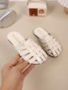 Girls' Outdoor Sandals, Summer New Style, Round Toe Hollow Rhinestone Sticker, Non-Slip, Fashionable & Elegant, Children Flat Beach Sandals