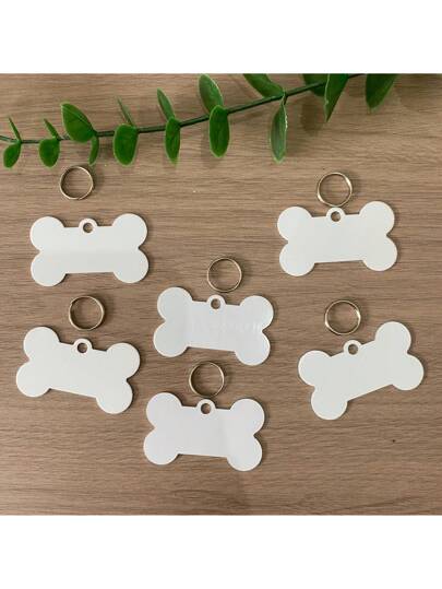6 Pcs/Pack Sublimation Pet ID Tag With Keychain, Aluminum Heat Transfer Printed Dog & Cat Double Sided White Pet Loss Prevention Tags - White - View 1