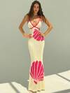 Aloruh Women's Romantic Shell Embroidered Knit Colorblock Sweater Dress, Spring/Summer, Vacation Sexy Dress