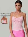 Women's Sexy Backless Backless Camisole Tank Top With Removable Pads, Suitable For Casual, Gym, Yoga, Pilates, For All Season