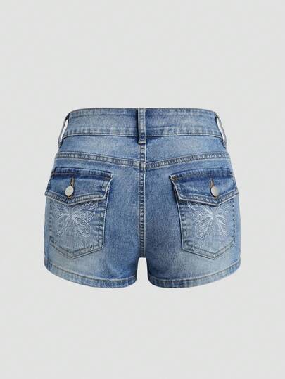 Sweetra Women's Fashion Casual Versatile Sexy Embroidered Denim Shorts - Light Wash - View 1