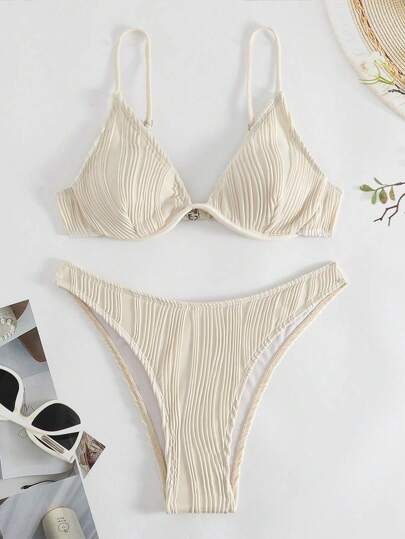 Swim Basics Solid Underwire Bikini Set,Summer Beach - Beige - View 1