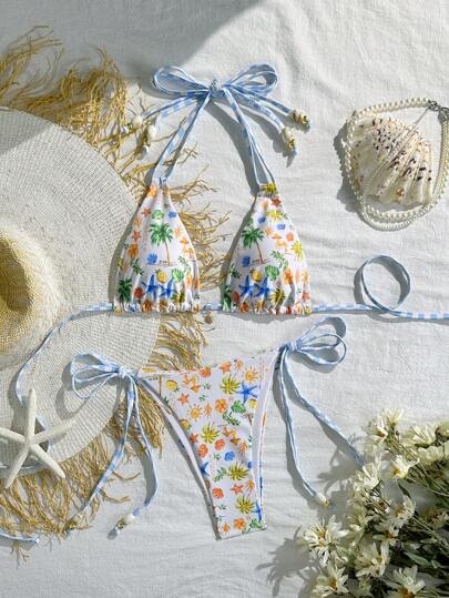 Swim Mod Women's Fashion Sexy Digital Printed Halter Bikini Top Set, Beachwear Swimwear For Summer Beach Vacation - Multicolor - View 1