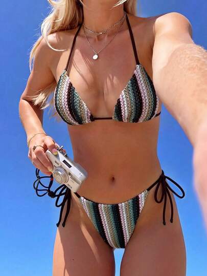 Review: Lindo a textura é perfeita ! Eu virei a frente para trás para ficar menor porque não gosto de biquíni grande ! Visto 34/36 no Brasil tenho prótese de silicone e peguei o tamanho XS achei que a parte de cima ficou pequena !