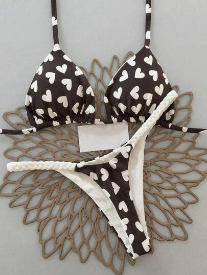 2pcs Geometric & Tropical Floral Print Swimsuit, Casual Cute Elegant Sexy Bohemian Tie-Up Bikini, Suitable For Spring/Summer Beach Vacation, Women's Set, Beach Outfit, Women's Bikini, Women's Beach Suit - Brown - View 1