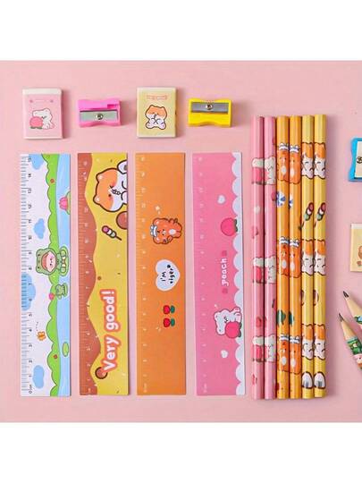 4 Pieces Durable Cartoon Pencil Stationery Set, 5 Pieces Combination Drawing Tool Kit, School Supplies, Office Supplies, Educational Gifts, Holiday Prizes, School Supplies Stationery Teacher Gifts(Random Colors) - Multicolor - View 1