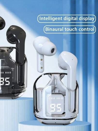 T2 Crystal Style Comfortable Full In-Ear Display Bluetooth Headphones - White - View 1