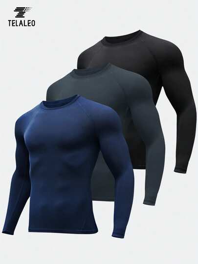 TELALEO 3pcs Men's Boyfriend Style Long Sleeve Compression Shirts, UPF SPF Sun Protection Sports Undershirts - Multicolor - View 1