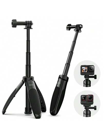 TELESIN Mini Quick Release Selfie Stick Tripod Portable Adjustable Length For GoPro Insta360 DJI Osmo Action Action Camera - Black - View 1