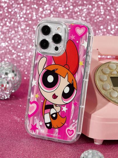 THE POWERPUFF GIRLS X SHEIN Durable And Fashionable Mobile Phone Case, Four-Sided Thick Airbag Anti-Drop, Blossom Pattern Chiffon Protective Cover Design, Compatible With IPhone 11 - 17 Pro Max ,Y2K - Red - View 1