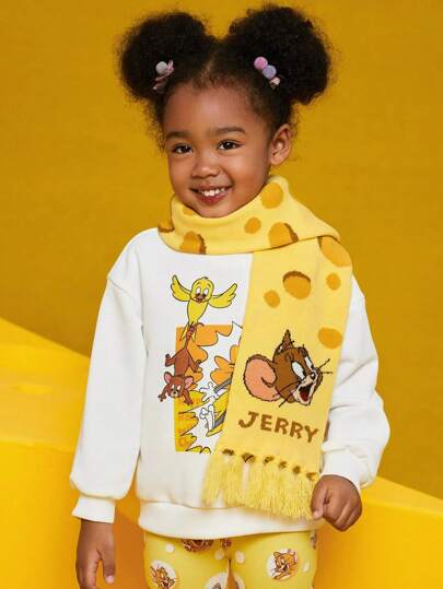 TOM & JERRY X SHEIN Cute Cartoon Cat And Mouse Reversible Winter Warm Scarf For Kids - Multicolor - View 1