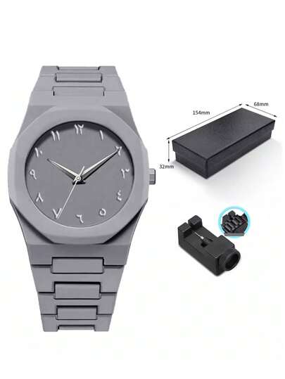 TOMI Classic Business Men's Watch Set, Plastic Strap Matte Oil Quartz Watch, Fashion Men's Watch Set Suitable For Daily Life, Holiday Gifts, Father's Day Gifts - Grey - View 1